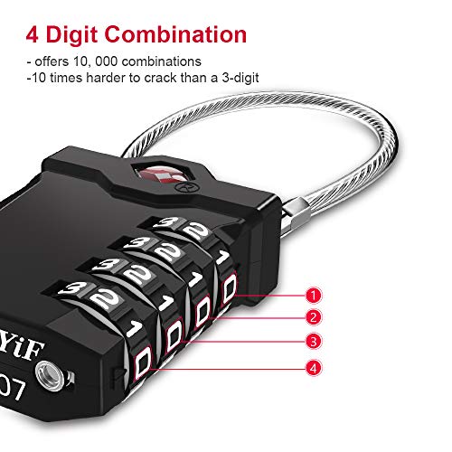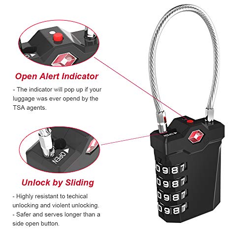 ▶SECURE & SOLID: The resettable 4 digit combination TSA locks allow you to set you own code with 10,000 options. It is 10 times harder to crack than a 3 digit. The heavy duty cable travel padlocks come with solid, compact body made of high strength zinc alloy. It is tough enough to survive even the roughest baggage handling. The feature opening by sliding is advanced and unique among TSA locks on the market, highly resistant to technical and violent unlocking .