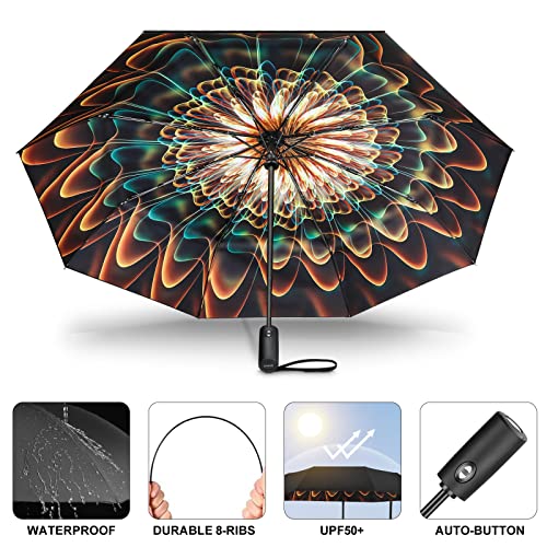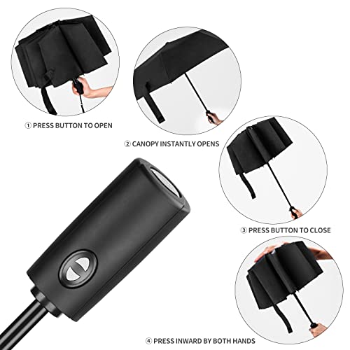 AUTOMATIC UMBRELLA: ZUOYOUZ folding umbrella adopts fully automatic button switch, which is easy to open and close. Sturdy iron umbrella skeleton combined with 8-bone carbon fiber tailbone, can rebound without deformation, which is effectively relieving from strong wind.