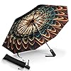 UPGRADED UMBRELLA FABRIC: The travel umbrella adopts multi-layer coating process, which has great waterproof and sun protection function. Compact umbrellas have built-in pattern, you will meet a good mood when you look up.